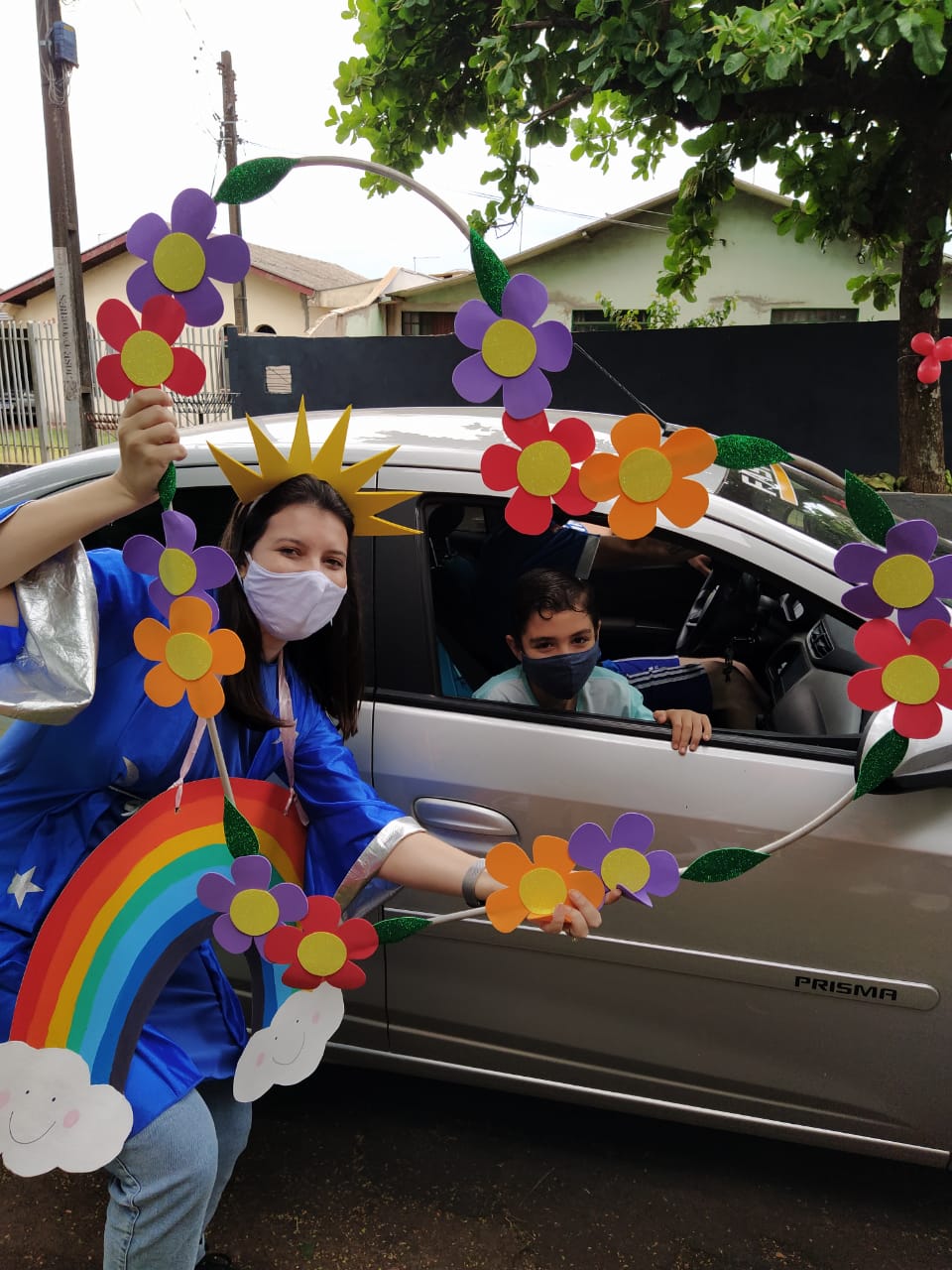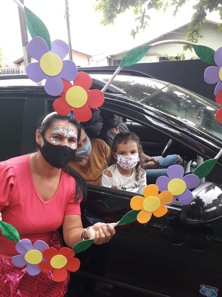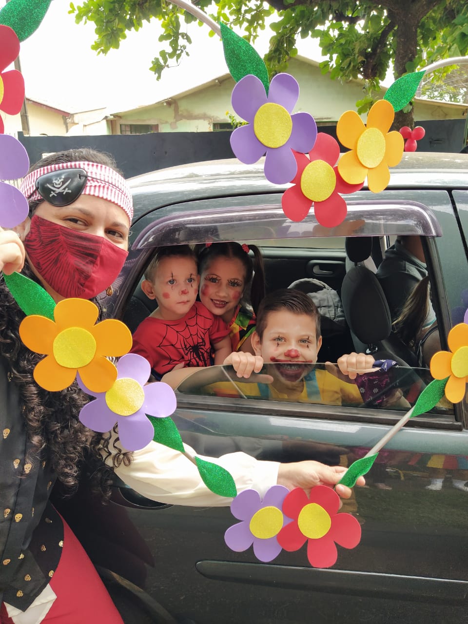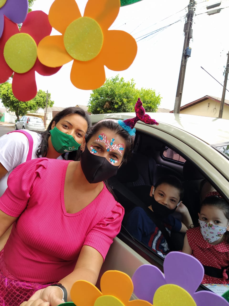 A nossa escola organizou um "drive-thru" e desta forma pudemos promover um reencontro com nossas crianças.