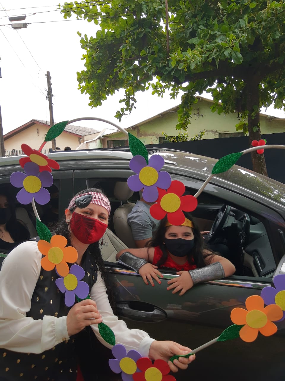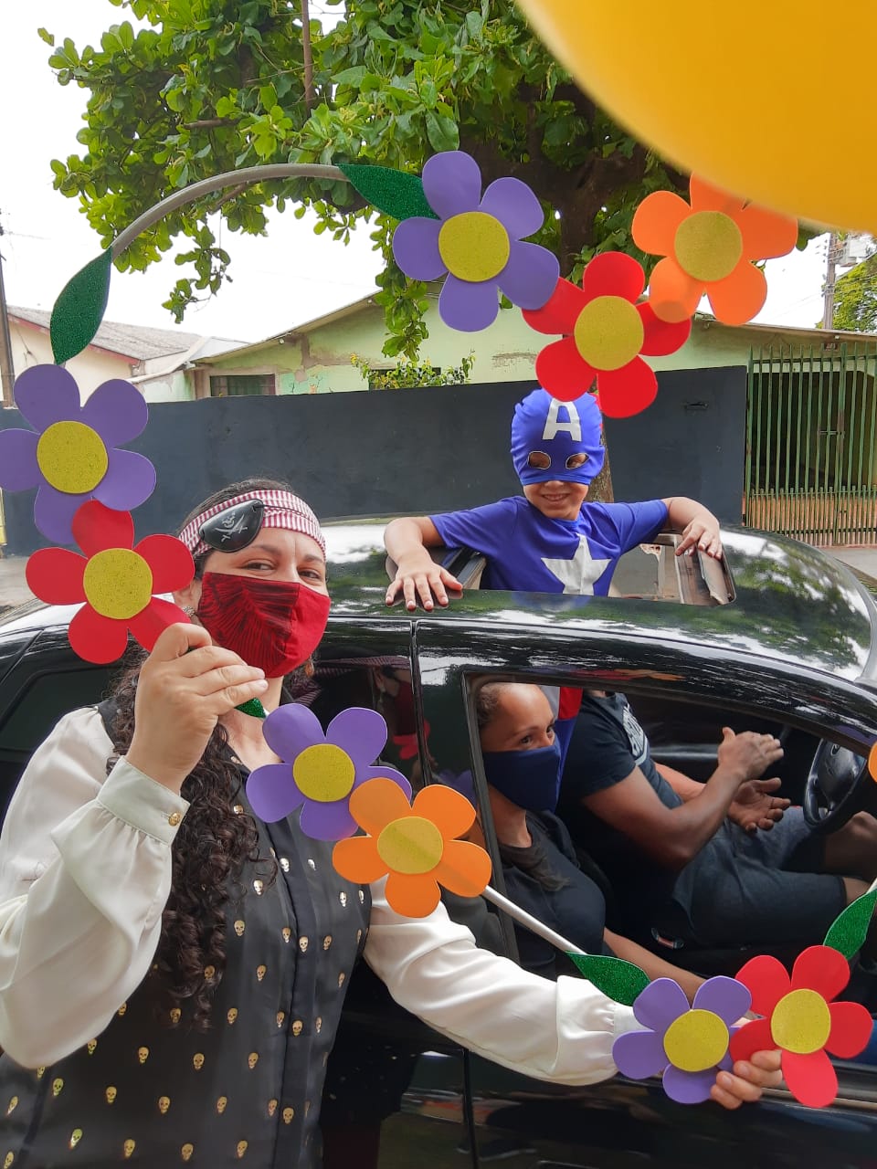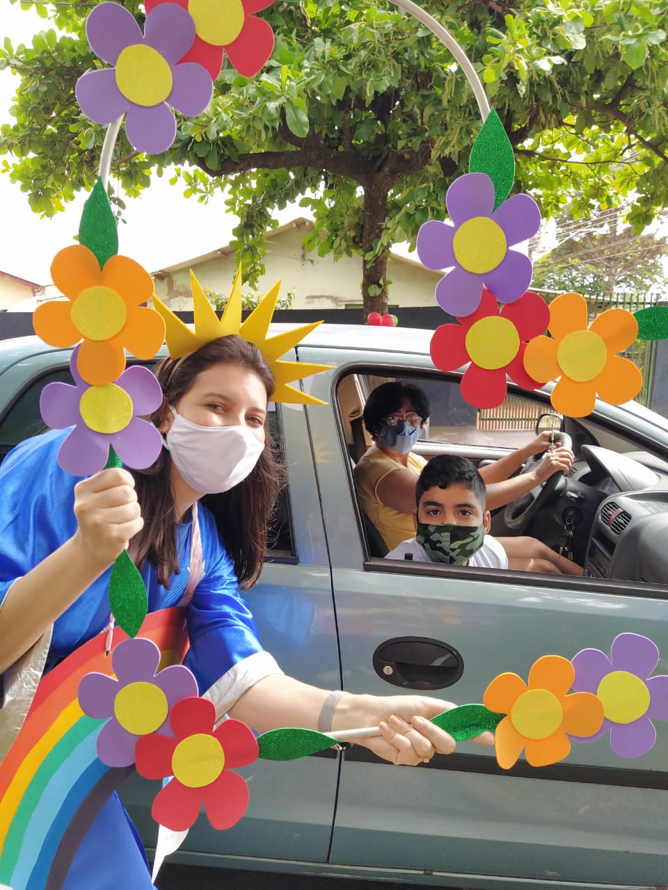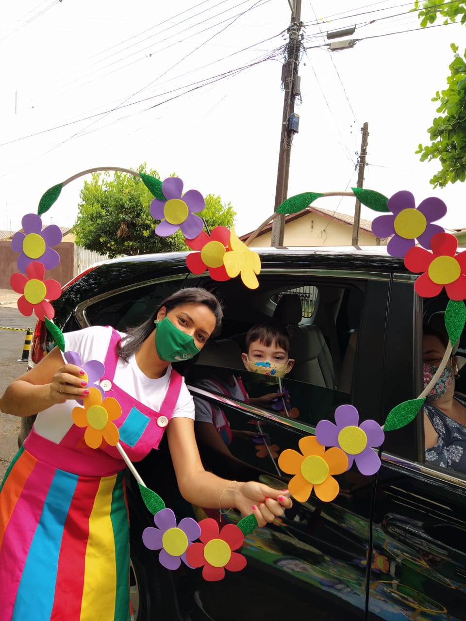 A nossa escola organizou um "drive-thru" e desta forma pudemos promover um reencontro com nossas crianças.