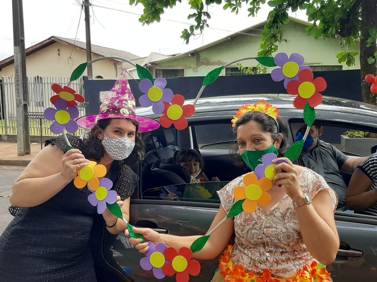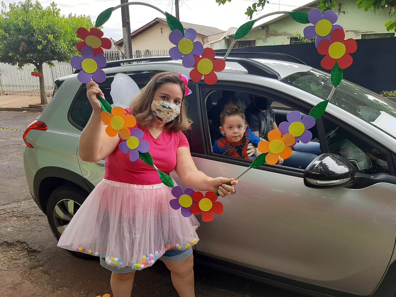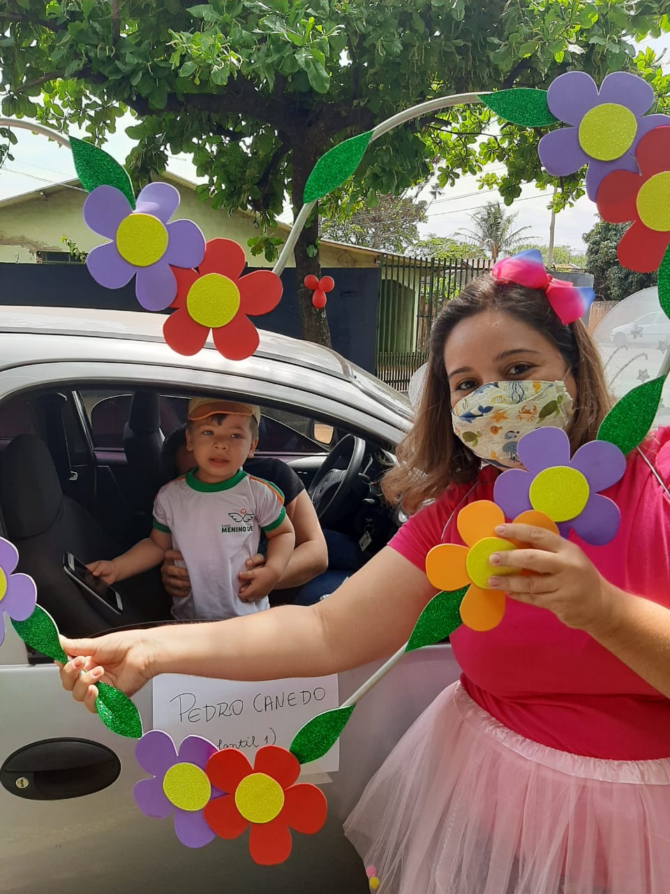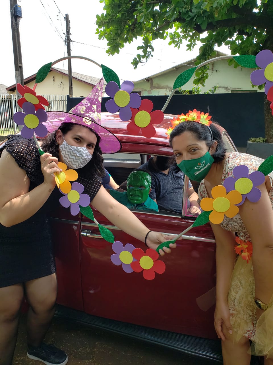 A nossa escola organizou um "drive-thru" e desta forma pudemos promover um reencontro com nossas crianças.