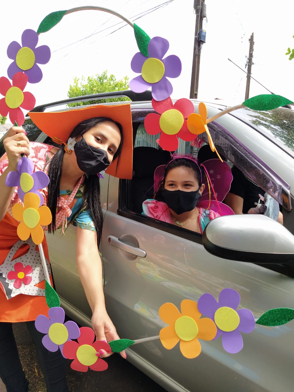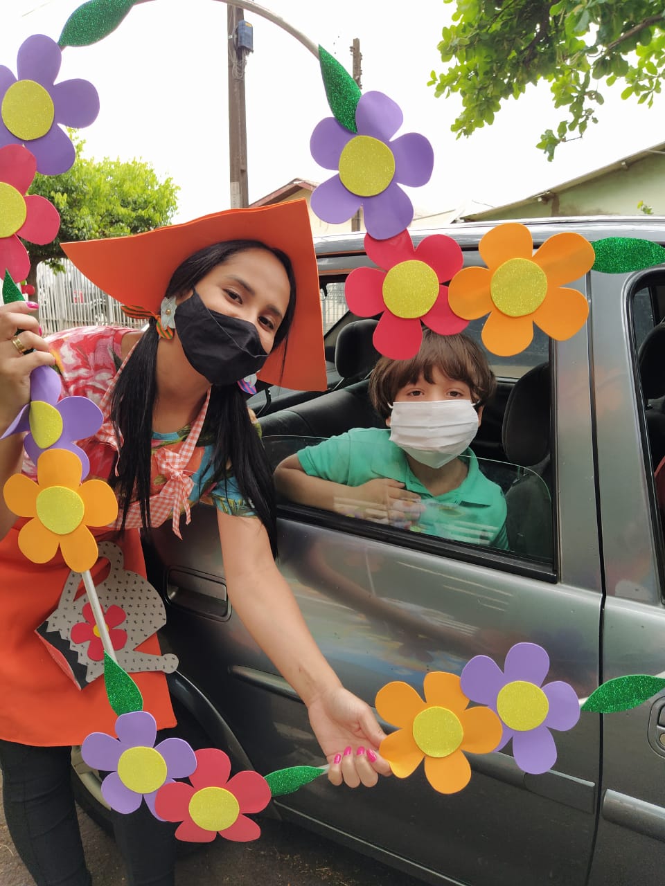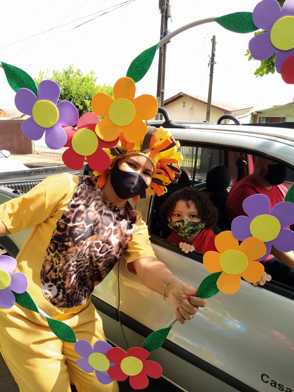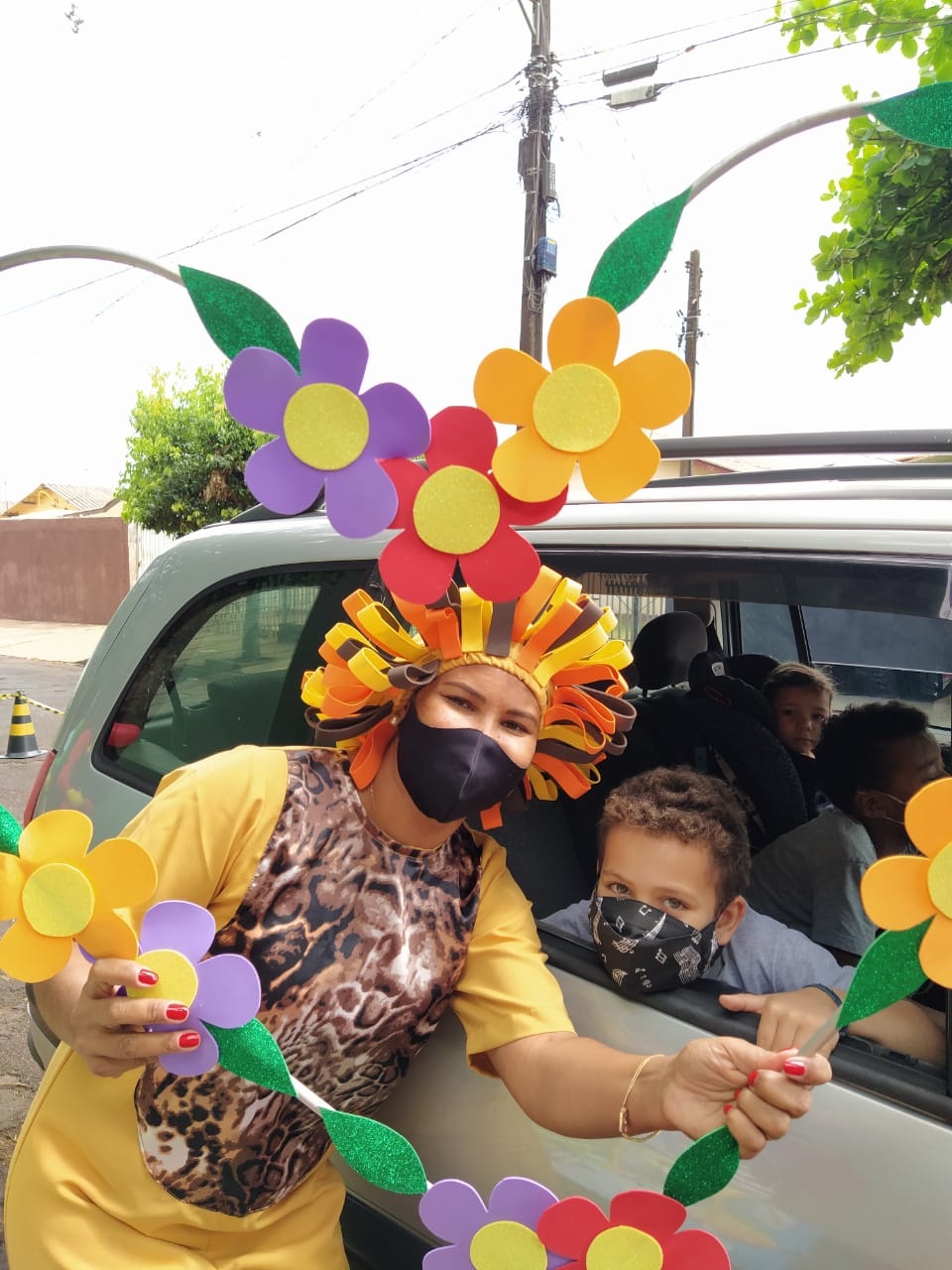 A nossa escola organizou um "drive-thru" e desta forma pudemos promover um reencontro com nossas crianças.