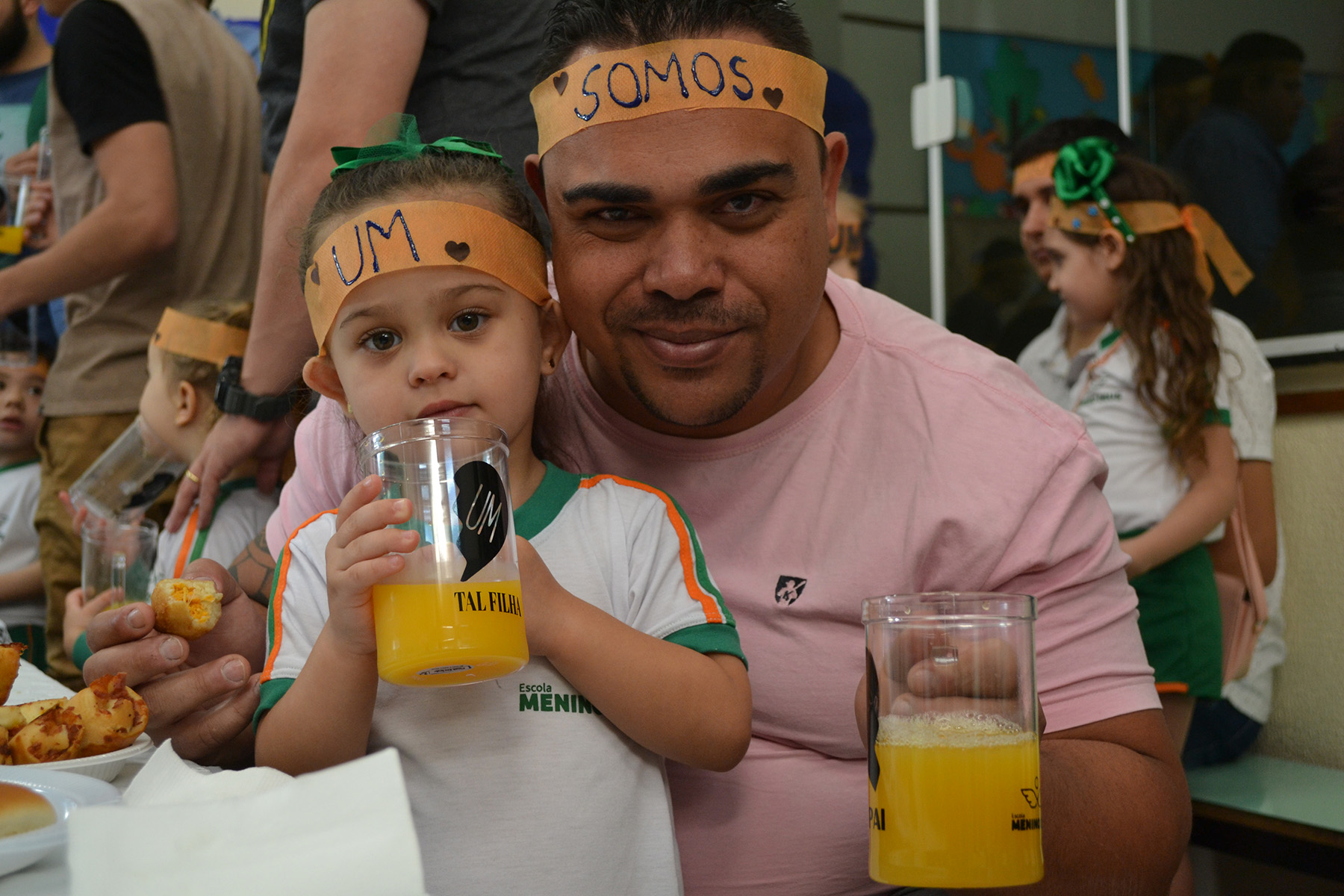 Reunir pais e filhos numa manhã de confraternização, eis o objetivo do Dia dos Pais. Com o tema SOMOS UM, inspirados no filme do Rei Leão, todas as atividades foram desenvolvidas com o intuito de estreitar ainda mais os laços entre pais e filhos. Os pais foram recepcionados com músicas cantadas pelas crianças em sua homenagem, sendo uma delas, em Inglês. Em seguida, todos aproveitaram um delicioso café da manhã, lembrando que, a preocupação com o Planeta Terra sempre se faz presente, afinal Somos Um, um Planeta, uma casa comum, assim, todos receberam uma caneca personalizada, como presente, para as bebidas, evitando o uso de copos descartáveis.