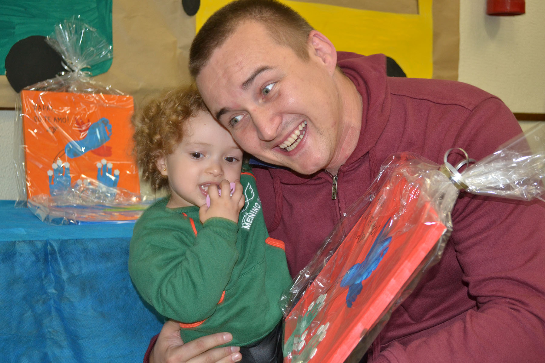 Os alunos emocionaram os pais cantando uma linda canção intitulada "Que abraço bom!", e claro, deram um grande abraço no paizão durante a música.
