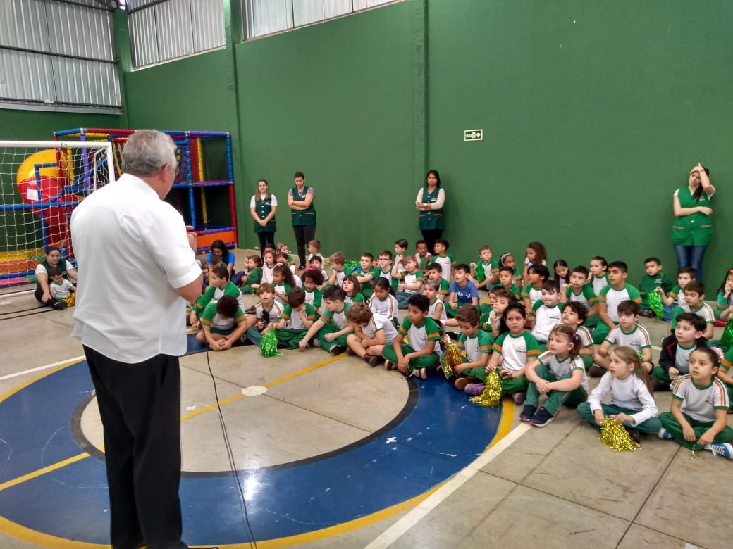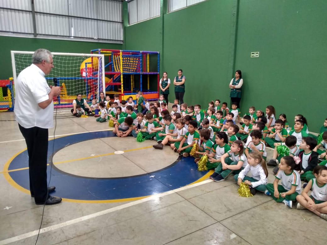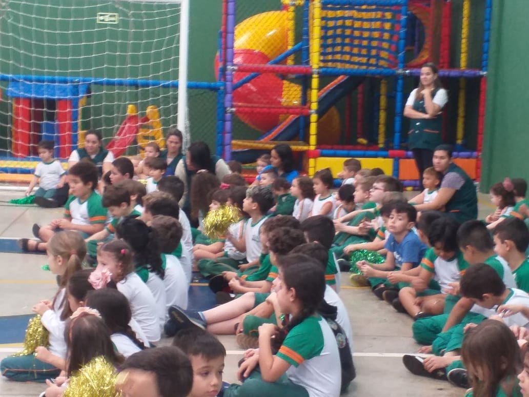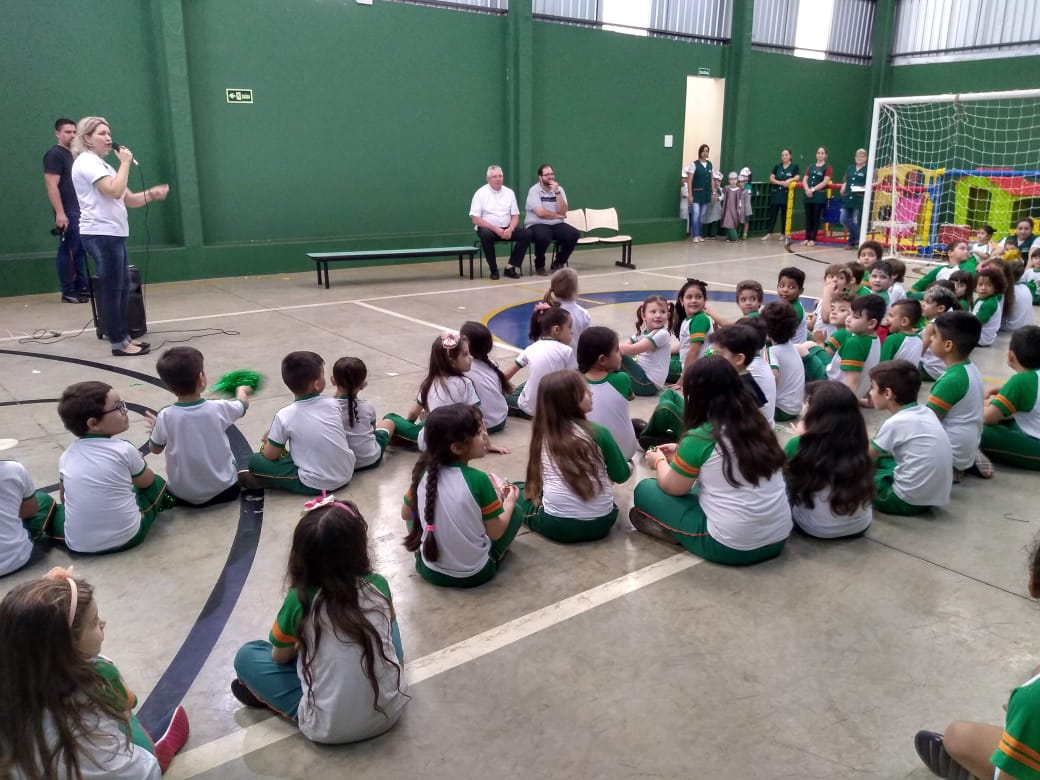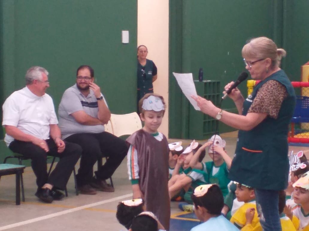 O Infantil 5, da professora Silvana, apresentou um lindo teatro intitulado "DE QUE COR É O AMOR?" e logo após toda a escola cantou uma música de boas-vindas ao arcebispo.