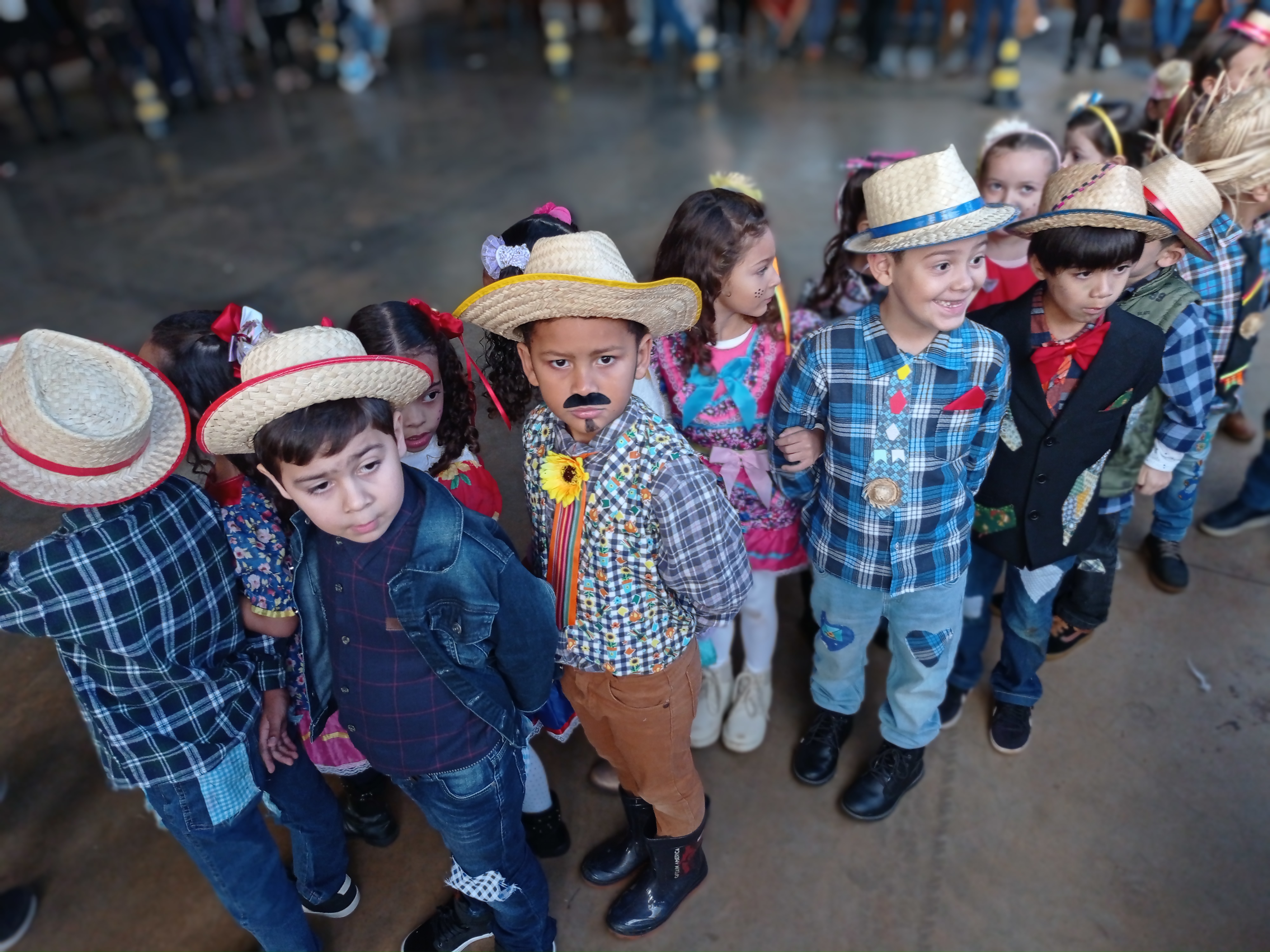 Cada turminha fez a sua apresentação e tudo foi muito bonito. Os papais e as mamães dos mais pequenos se encataram com a graça de seus caipirinhas.